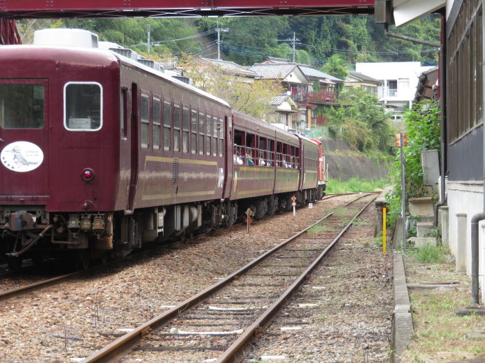 ヒガンバナを見た後、水沼駅に行きます、すると丁度渡良瀬渓谷鉄道のトロッコ列車が入って来ました。