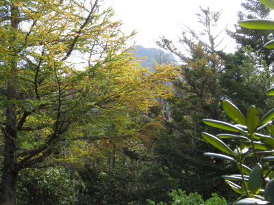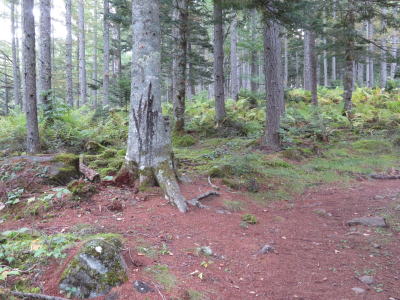 急な斜面を注意深く下って標高2500mくらいの展望台まで来ればもう安心だ、でも樹林帯は滑りやすいので気を緩めず慎重に下ります。