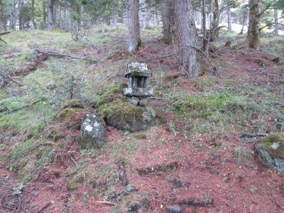 踏み跡が沢山有ってここは右に | 諏訪大社奥社への分岐 |