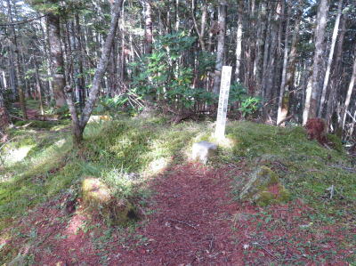 御小屋山に着いたかという事で休むことに、ところが歩き始めると三角点が有りさらに先には山頂標識の有る広場が有る、どこが本当の山頂?