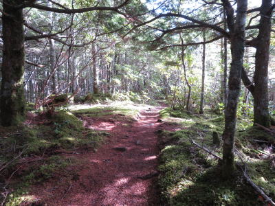 苔の道はほぼ平らでフカフカ、ルンルンで歩けます、でもこの後少し下りが 三か所くらい有りました。