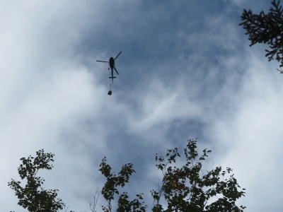 山小屋への荷揚げらしいヘリコプターが頻繁に飛んで来る、天望荘にでも行くのでしょうか、丁度御小屋尾根の上を飛んでいく、液晶モニターでは全く見えないので、あてずっぽうでシャッターを押したら写っていました。