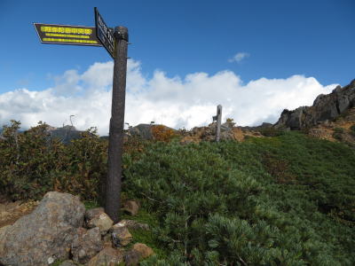 直進は南稜ルートの道標も有るが一般ルートではありませんと書いて有る、私の持っているエアリアマップには点線すら無い。