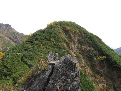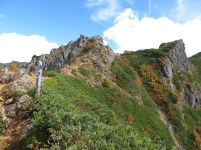 アルミ梯子を登ると小さな稜線に登る | 最後に岩場、何処を登るのかな |