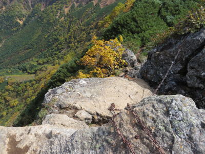 ここで二人目の登山者とすれ違う、急斜面で高度感はあるが、三点確保に集中して歩けば問題ない。