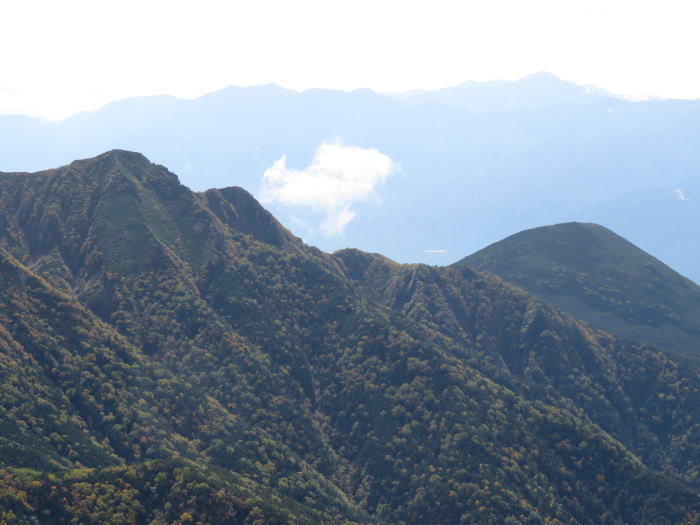 ギボシの上の山を拡大すると鳳凰三山のようです。