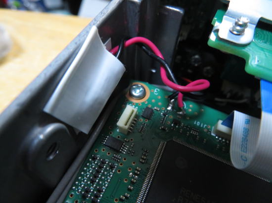 絶縁のヒシチューブをかぶせてテープで留めます |