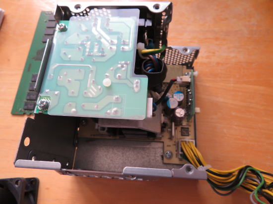 電源、拡張カードスロット、CPUのカバー、RAMを外したところ。