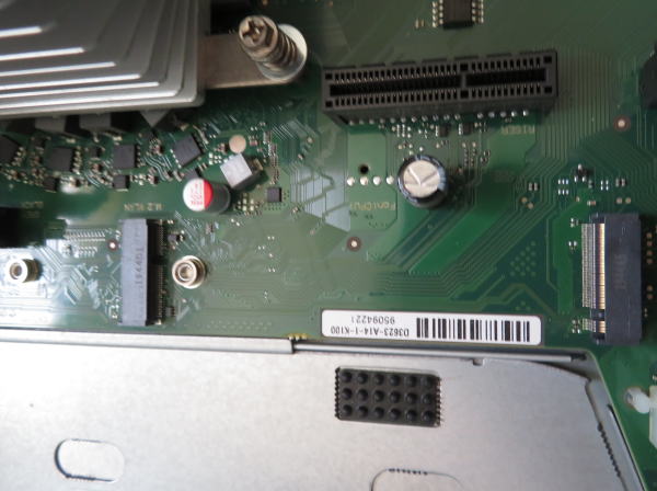 マザーボード上にM.2タイプのメモリーソケットが有る、よく見ると短い方は違うようだ、ワイヤレスのカード用かもしれない。