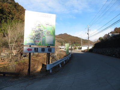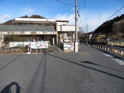 | 公民館に車を止める | バス停の有る分岐は右に行く |