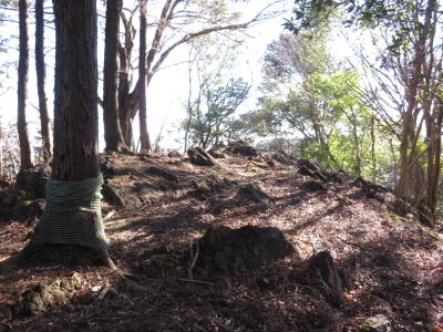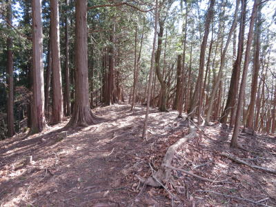 展望は東側、樹林の間からわずかに山並みが見える、近くの木に有るのは熊棚でしょうか。