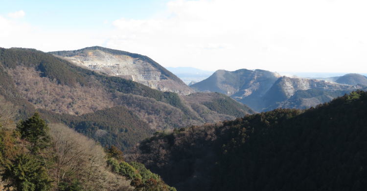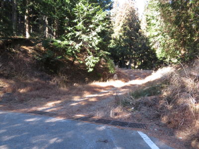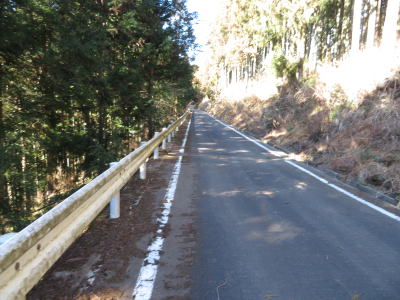 林道に下り、出流山はこの林道の先のカーブのところを右に行くので、林道を左に行って出流山に向かう。