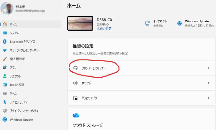 | プリンターとスキャナーを開く |