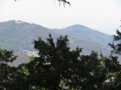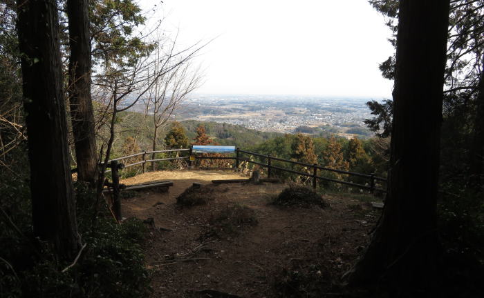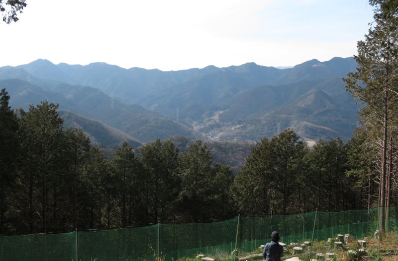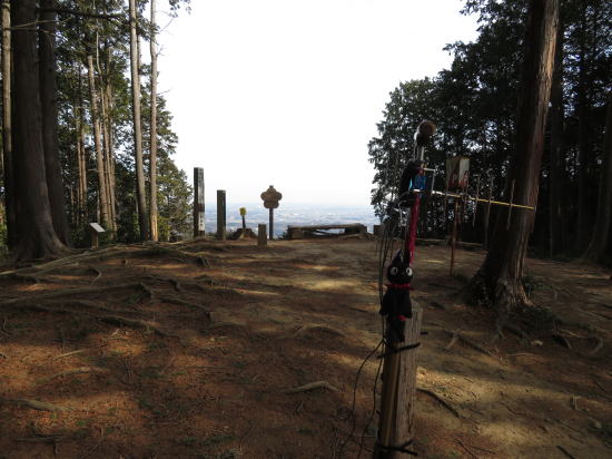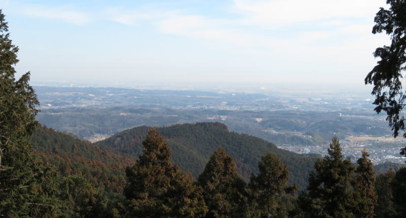 | 西側の展望、左のピークが越上山で右が関八州見晴台、木の陰に飯盛山とアンテナが見えました |