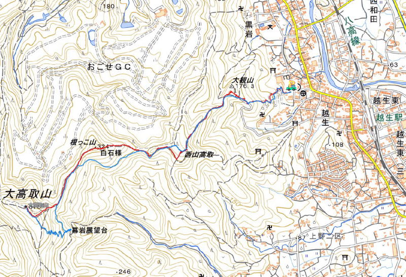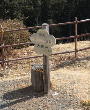 越生10名山というのが有ったので調べたら、大高取山、上谷の大クス山、顔振峠、弘法山、野末張(ノズバリ)見晴台、龍ケ谷のヤマザクラ山、関八州見晴台、飯盛山(イイモリヤマ)、大観山(タイカンザン)、虚空蔵尊さくら山という事でした。