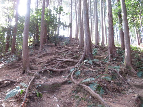 | 大高取山に向かう | 植林地の中の良く踏まれた道 |
