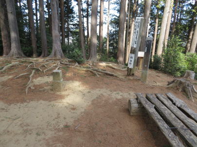 山頂は東西に広場に成っていて三角点、山頂標識、ベンチなどが有る、西側にはここより高い奥武蔵グリーンラインの山が壁のように連なる。