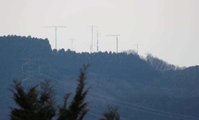 越上山のさらに左、樹林が切れた所に数本のタワーが見えました、昔ポツンと一軒家で放送されたアンテナベースのようです。